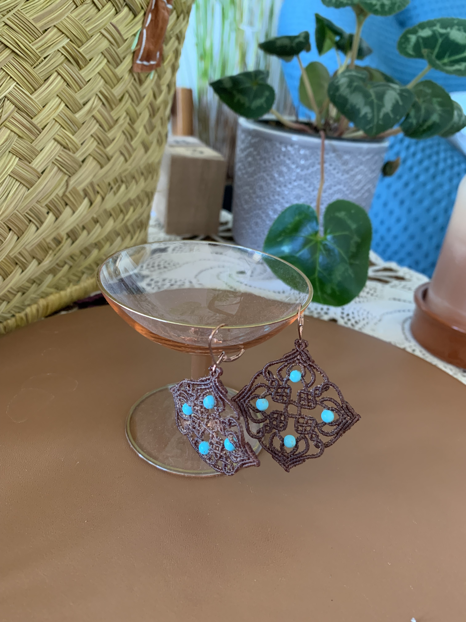 Crochets plaqués or rose Perles bleues – imitation turquoise